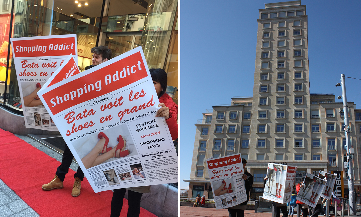 Nous avons donc imaginé une opération guerilla originale, en s’appuyant sur l’un des outils exclusifs de l’agence, les Mega-Journaux, pour annoncer en grand format bien-sûr, que BATA voyaient les SHOES en grand.