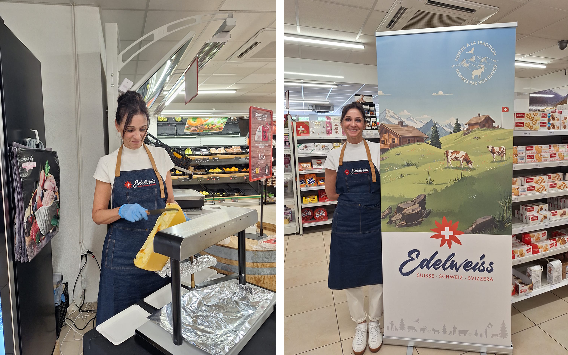 Pour ce ce nouveau mandat, nous avons placé une de nos meilleures promotrices, propulsée pour l’occasion Ambassadrice des fromages à raclettes et autres produits de la marque Edelweiss.