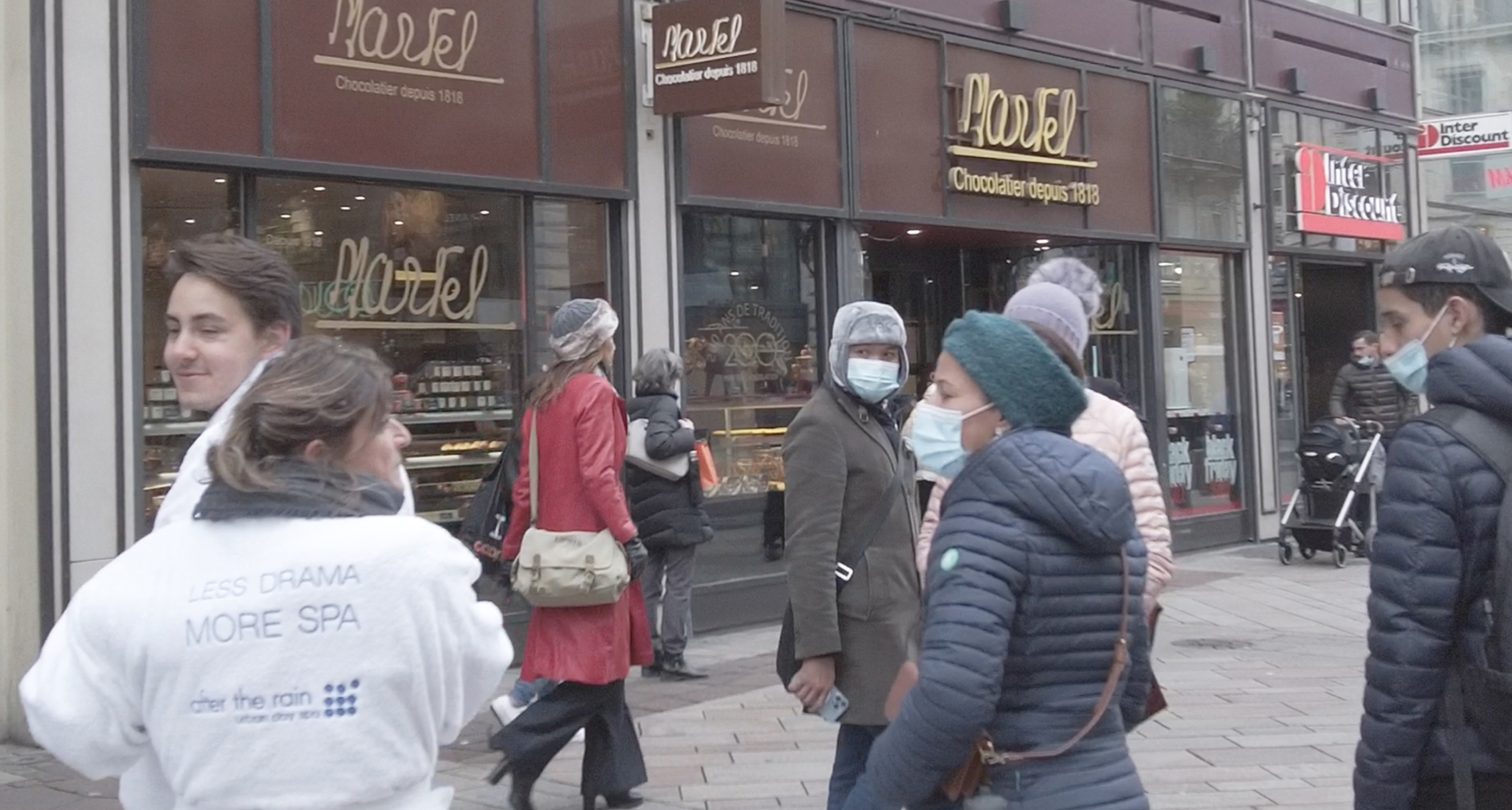 L’équipe, vêtue de peignoirs blancs portant dans le dos des messages de communications tels que « We are back », « je peux pas, j’ai SPA » ou encore « The future of spa is here » ainsi que le logo d’After the Rain, a déambulé pendant un après-midi, par des températures glaciales, afin de prodiguer informations et conseils autour de l’ouverture prochaine du futur spa, mi-décembre prochain.