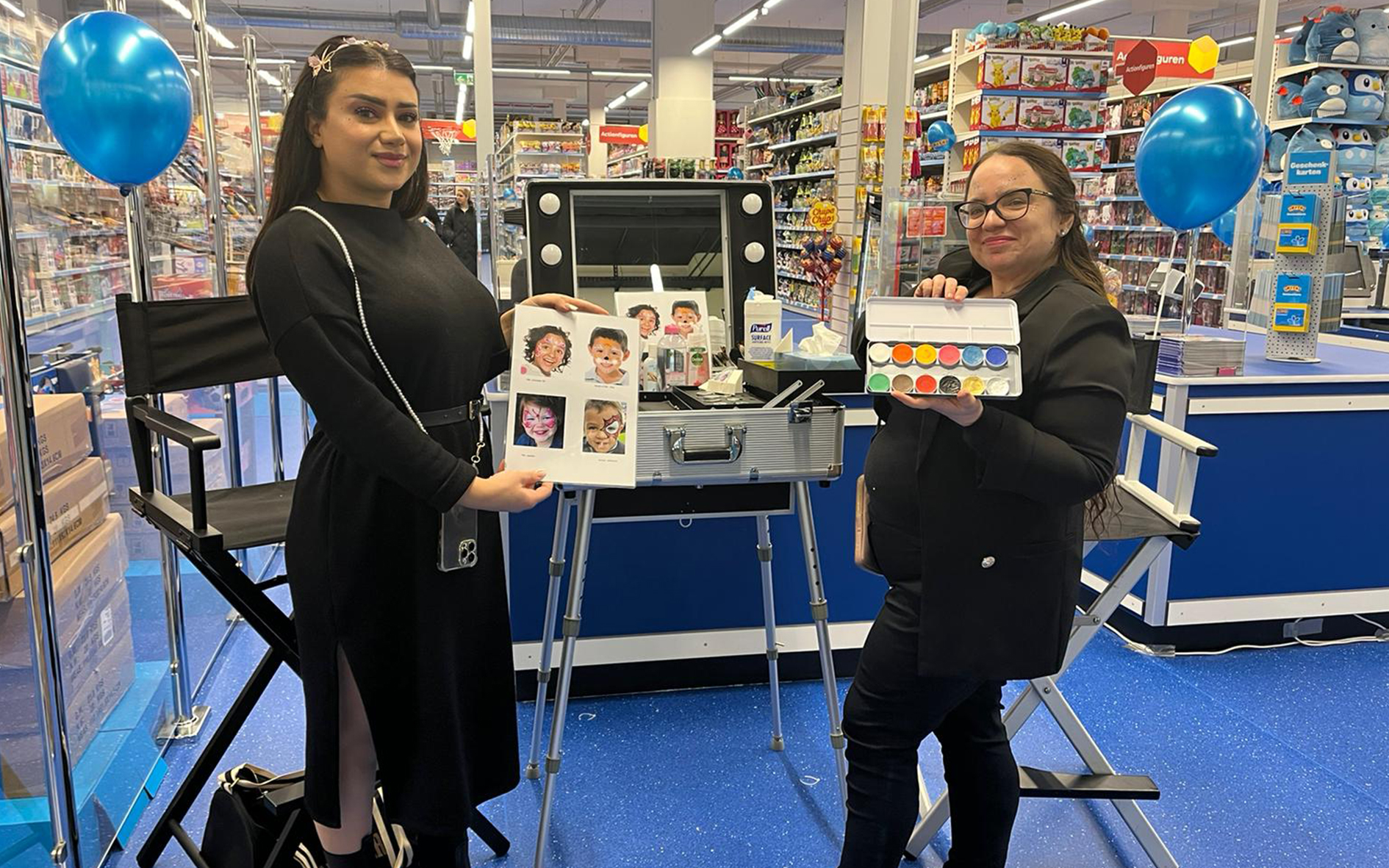 Pour cette présence, nous avons été sollicité par l’agence en charge du client, basée en Allemagne et s’occupant de l’ensemble du réseau européen (D-A-CH) pour placer un poste de maquillage pour enfants et distribution de barbe-à-papa.